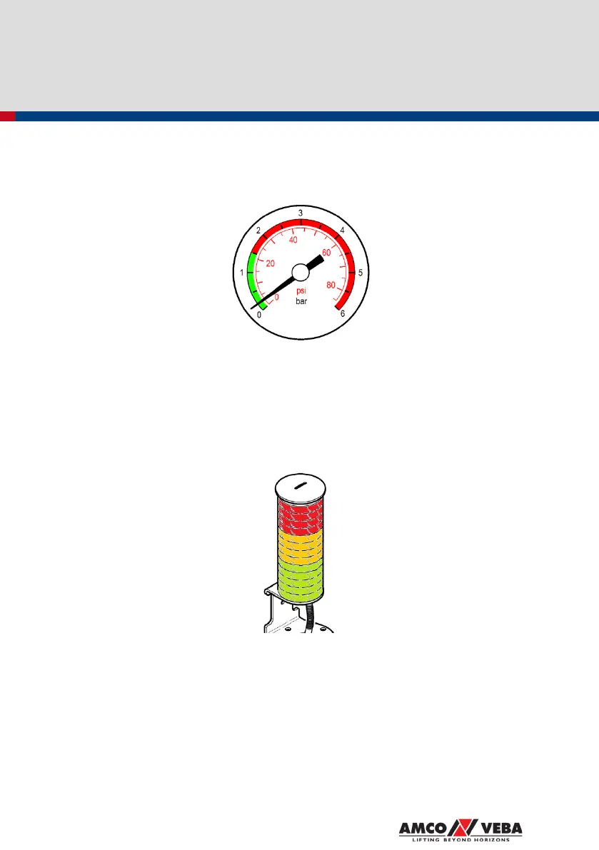 • Fixed red light, continuous audible signal: 100% of lifting capacity is reached