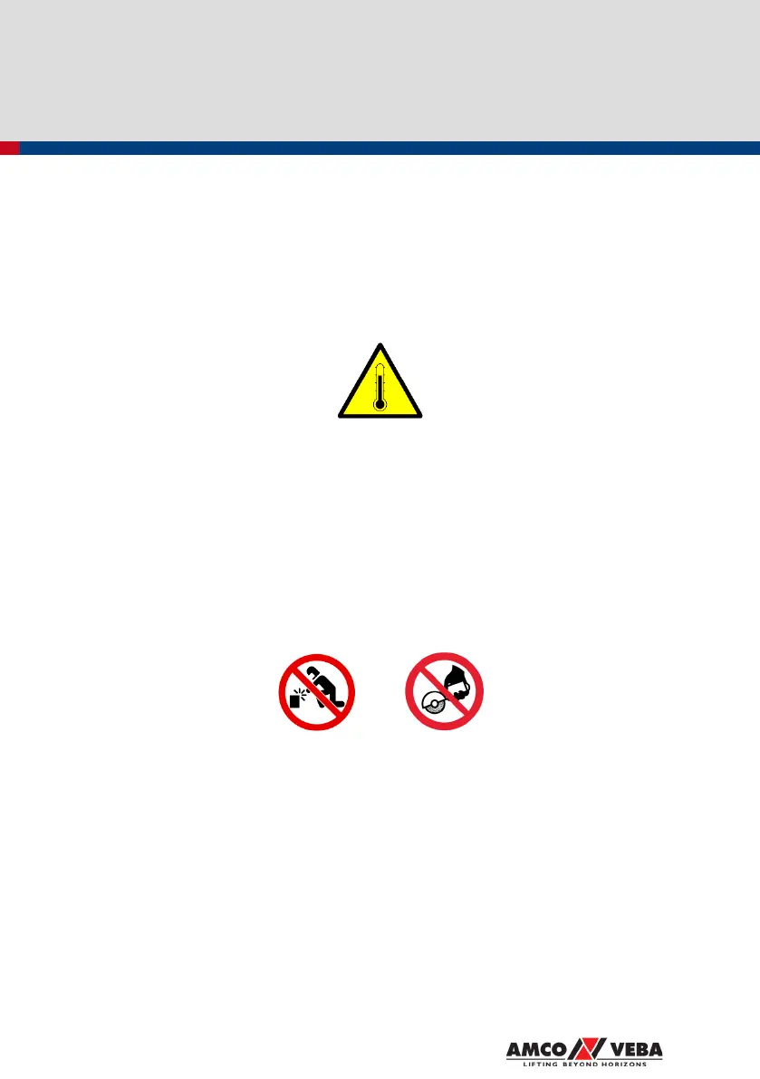 - Maintenance on the machine which requires welding or grinding is forbidden. Refer to an