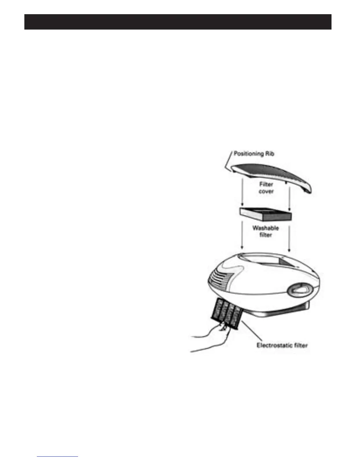 Put the Air Purifier in its upmost position and gently pull the electrostatic filter out of the lower