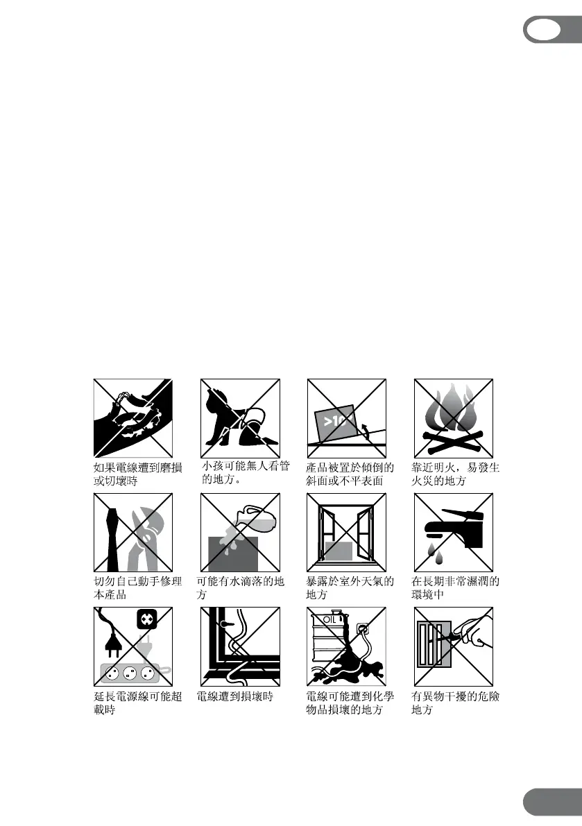 •在對本產品或者其任何零件進行清洗之前,要先切斷電源。