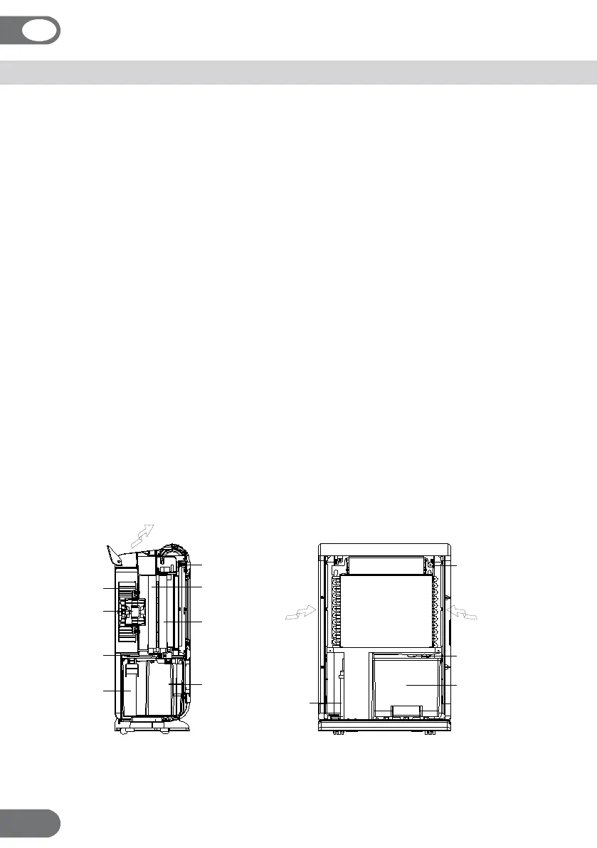 moisture condenses and collects into a removable water tank. The drier, slightly