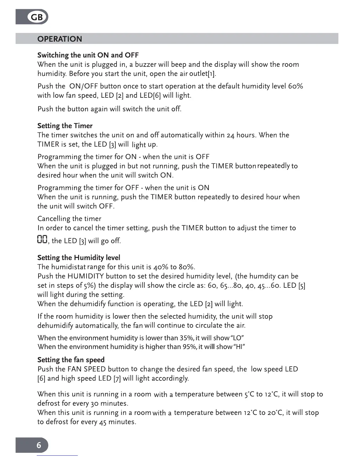 Amcor PLDM 18E - Operation and Functionality; Unit Power Management; Timer Settings; Humidity Level Adjustment