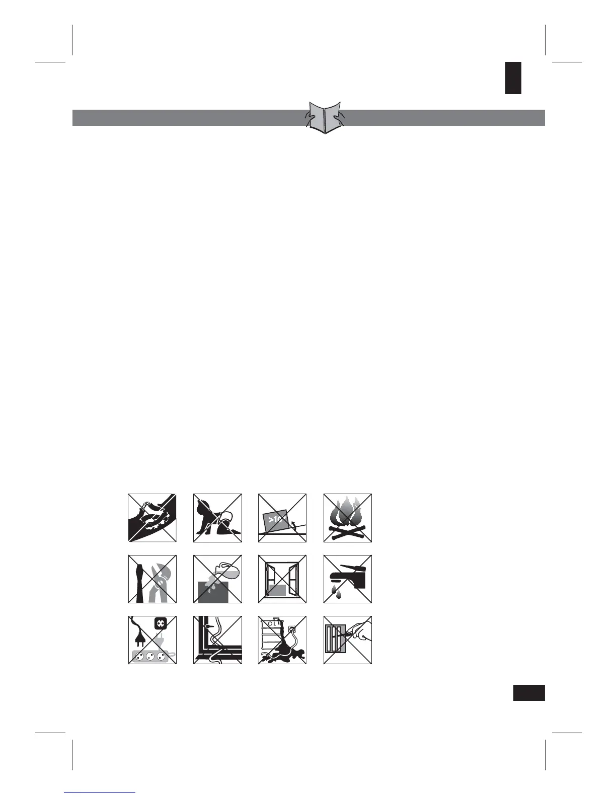 t Keep a minimal 0.5 m safety distance between the appliance with the electrical heater