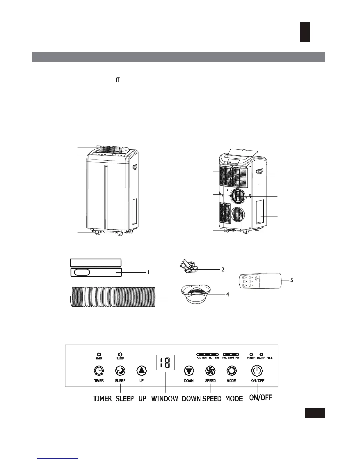 3:Flexible exhaust hose 4: Fishtail Adapter(for exhaust hose) 5:Remote control