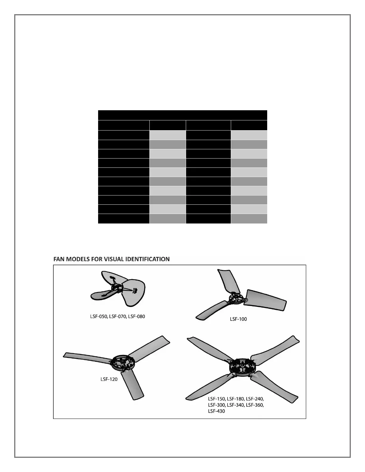 The following is the pitch chart for the adjustable fans on models ST-60 to ST-1500.