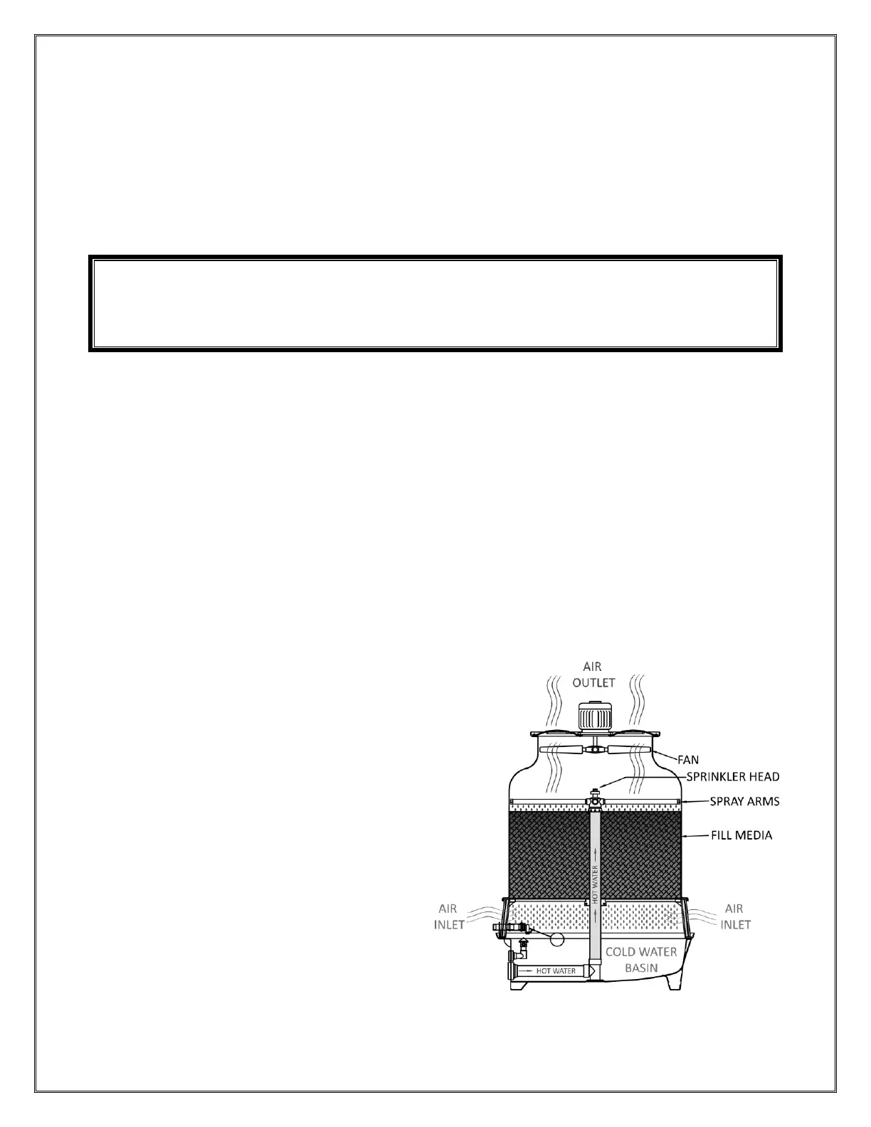 sprinkler system which distributes the water across a heat transfer media (fill media). At the same time,
