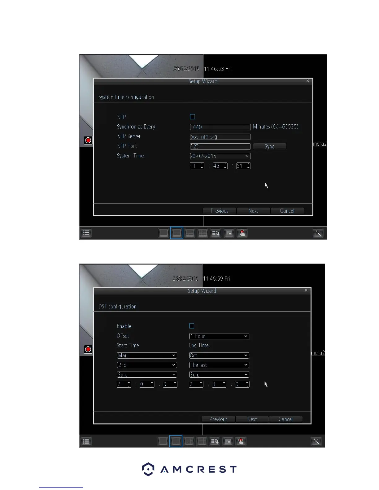 Amcrest 960H - Software Setup - Setup Wizard: Time; System Time and DST Configuration