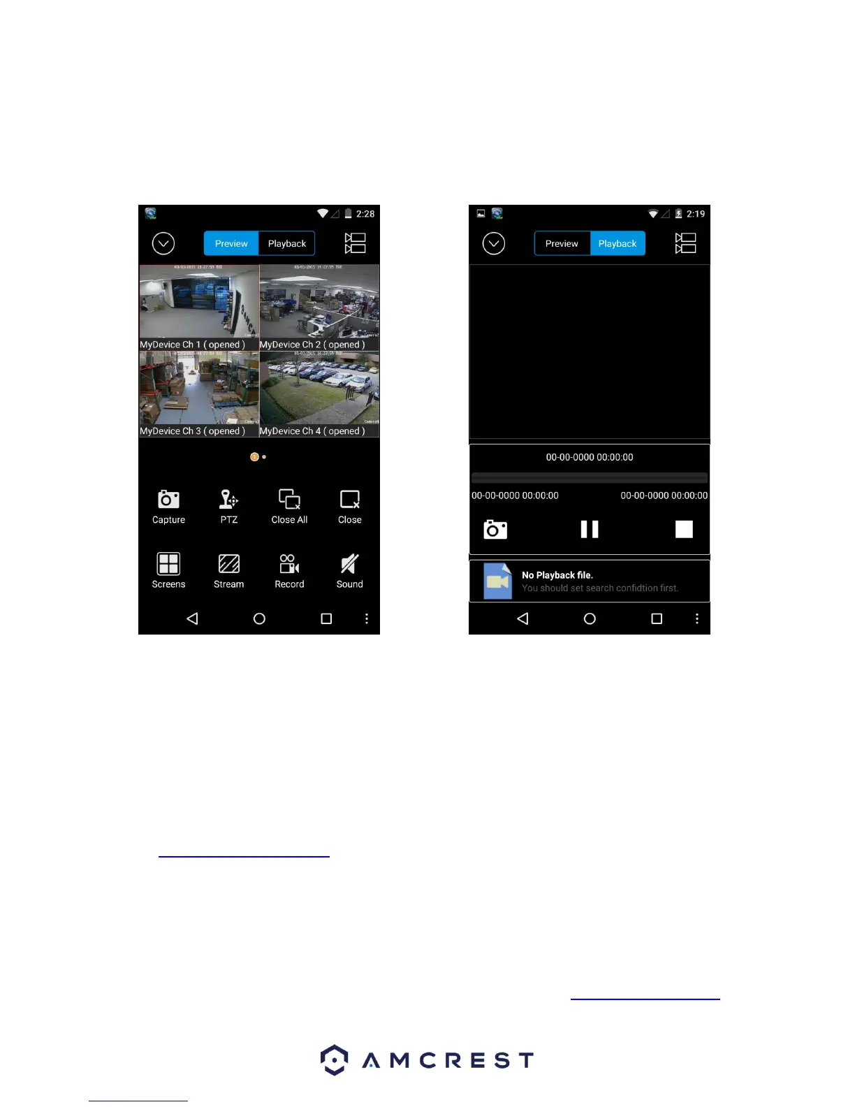 Once the app is setup to work with your DVR, it should look like the image below on the left.