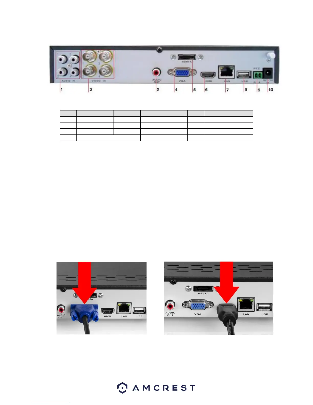 1. Connecting a monitor to the DVR. The DVR is compatible with any monitor that uses a