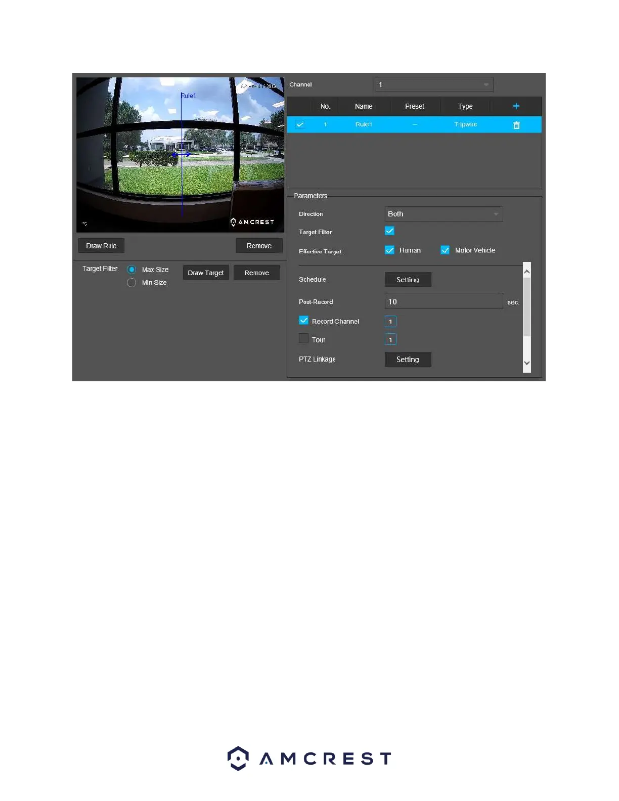 human or vehicle has entered the area. If a person is chosen, the rule will only be triggered if a human