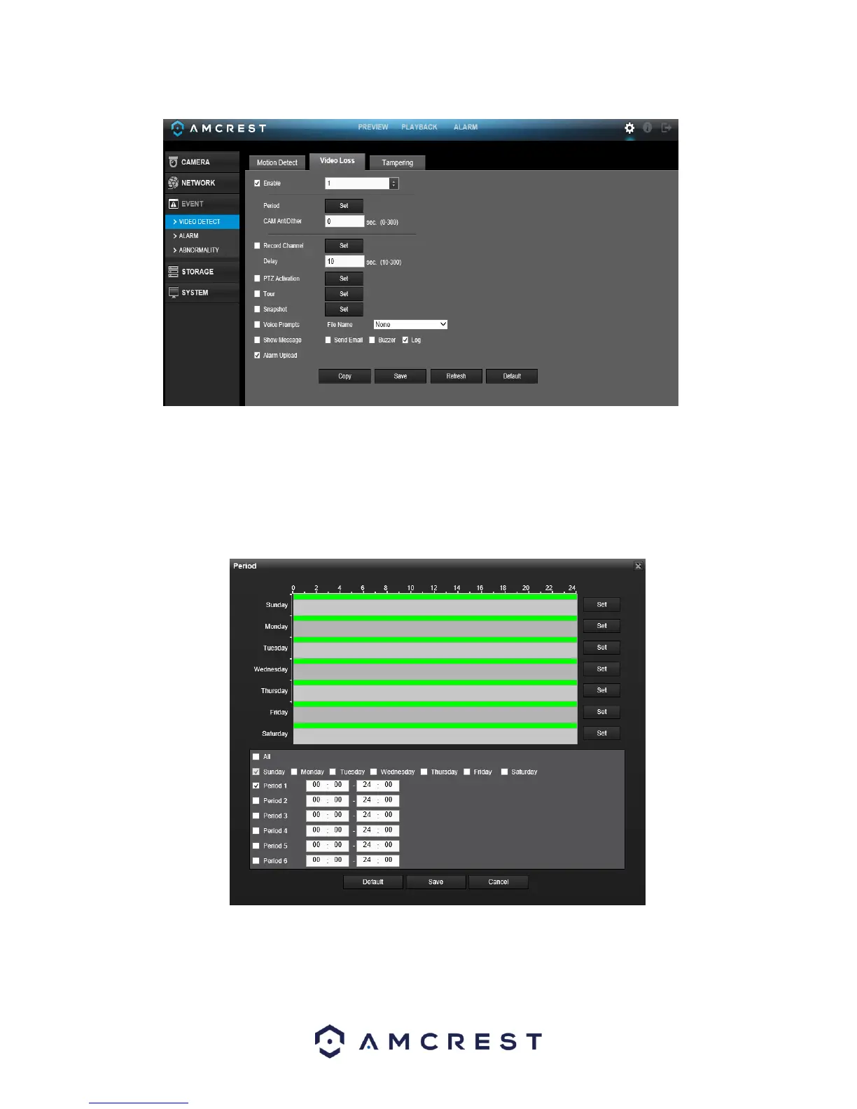 • Period: This setup button takes the user to the motion detection period settings screen. Below is a