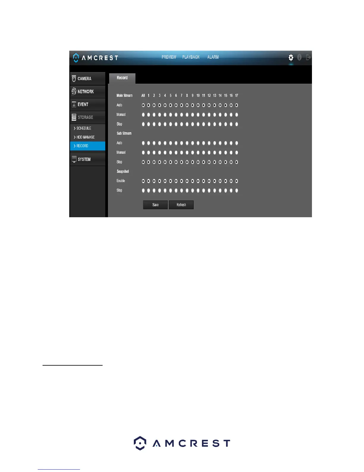 o Stop: Channels will not record in any capacity. This includes scheduled and manual recording.