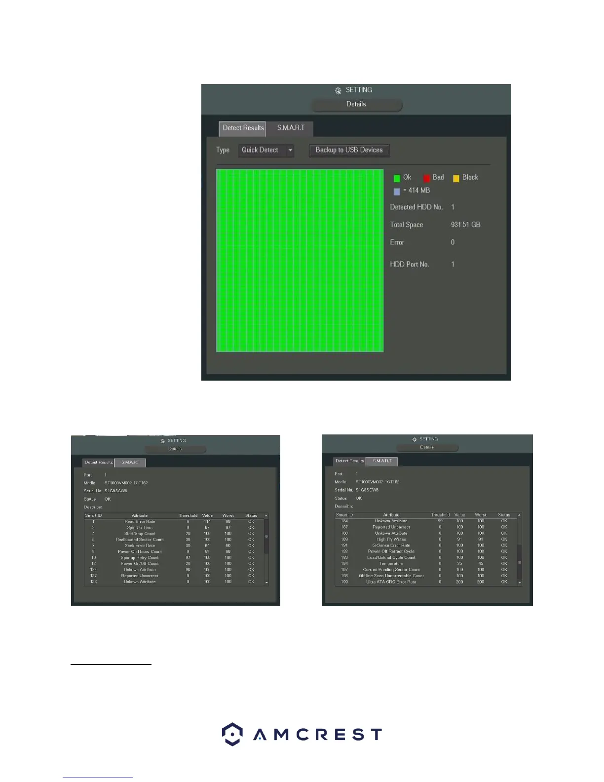 The Detect Results tab shows a visual representation of the hard drive scan results. The S.M.A.R.T. tab shows