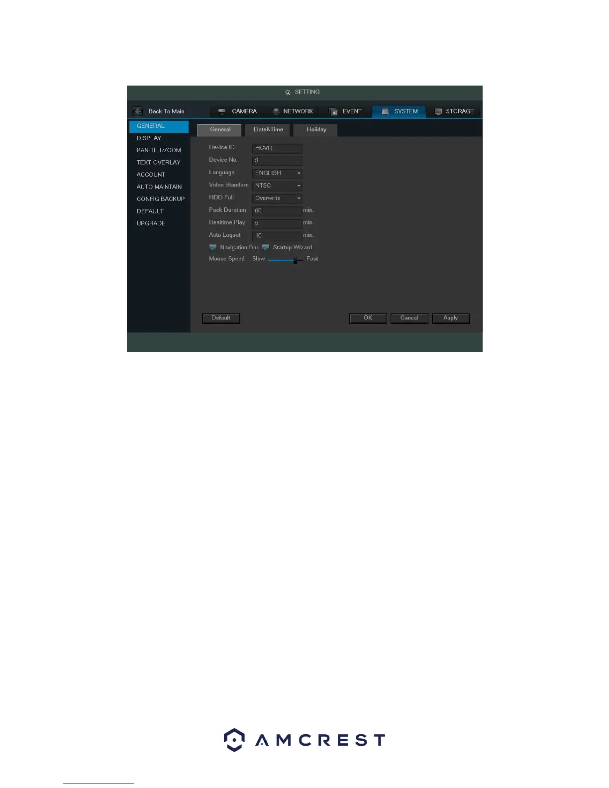 • Device ID: This field allows the user to customize the name of the HDCVI.