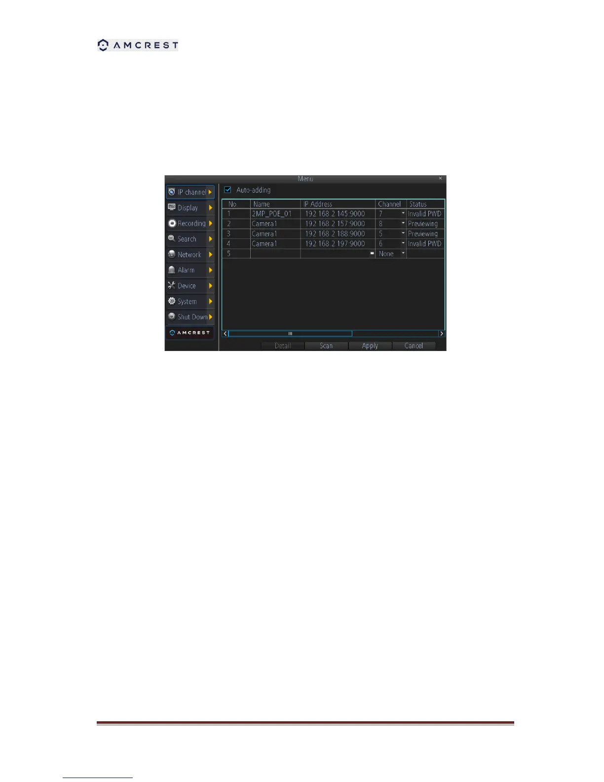 Auto-adding: If you check this, your DVR will automatically display video from cameras it has