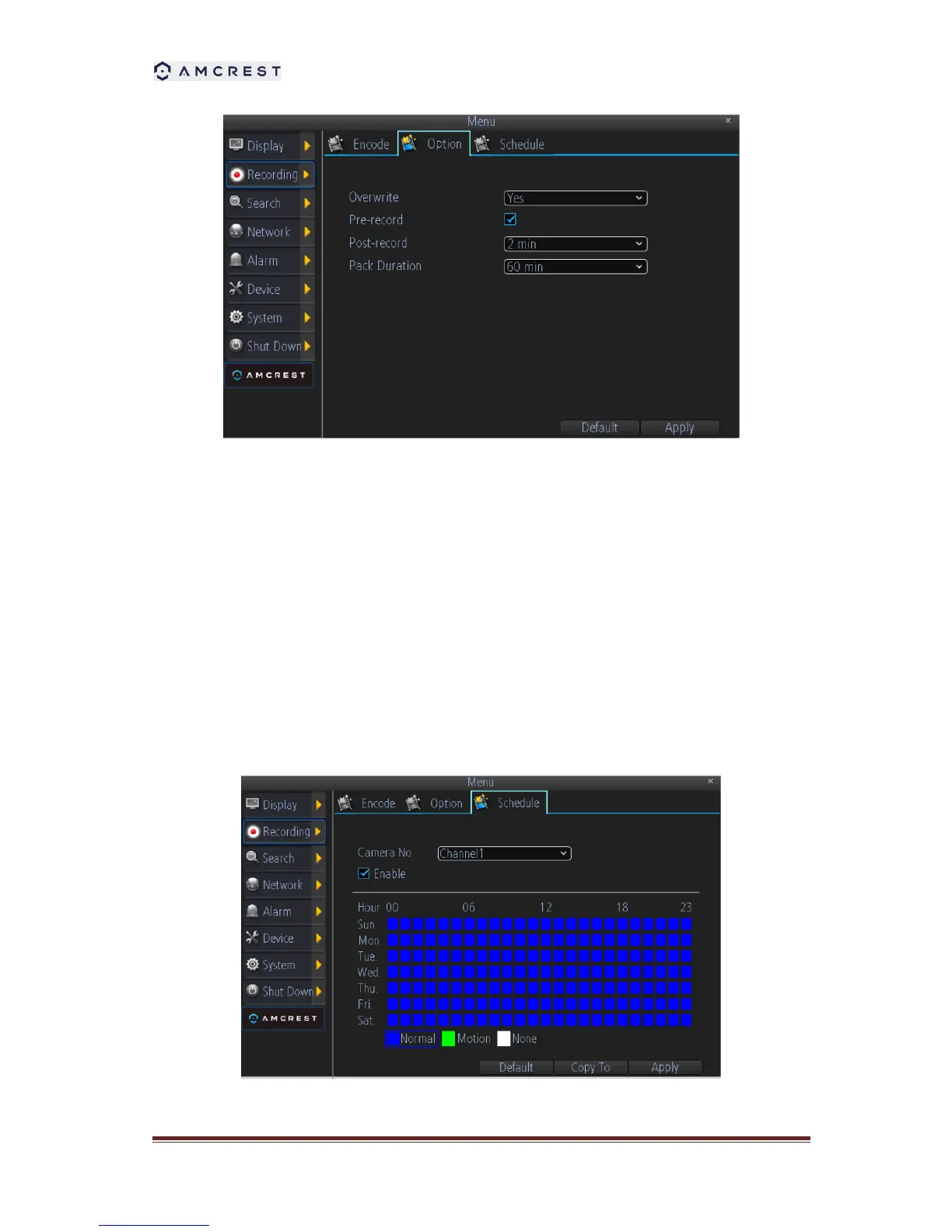 1. Enter the Record Settings menu (Main Menu > Recording > Schedule).