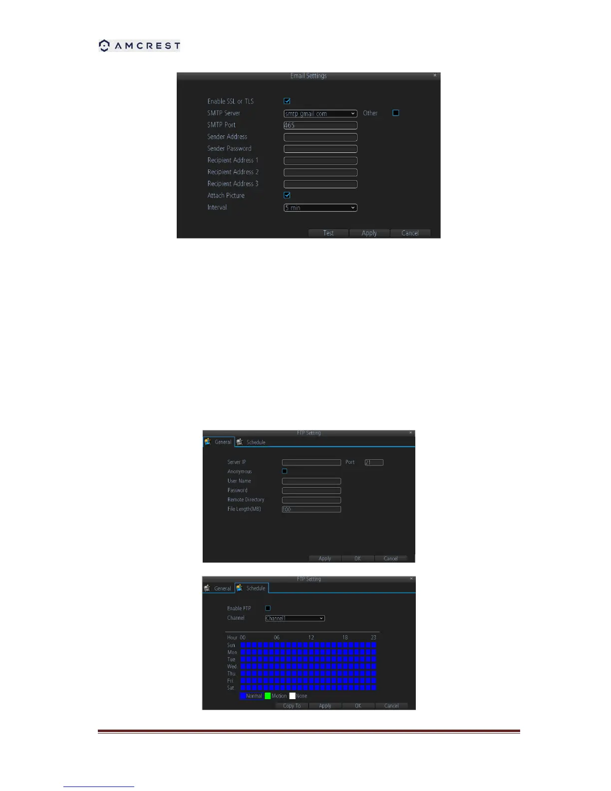 FTP is used to upload streams to your FTP server. You can set up an uploading schedule which