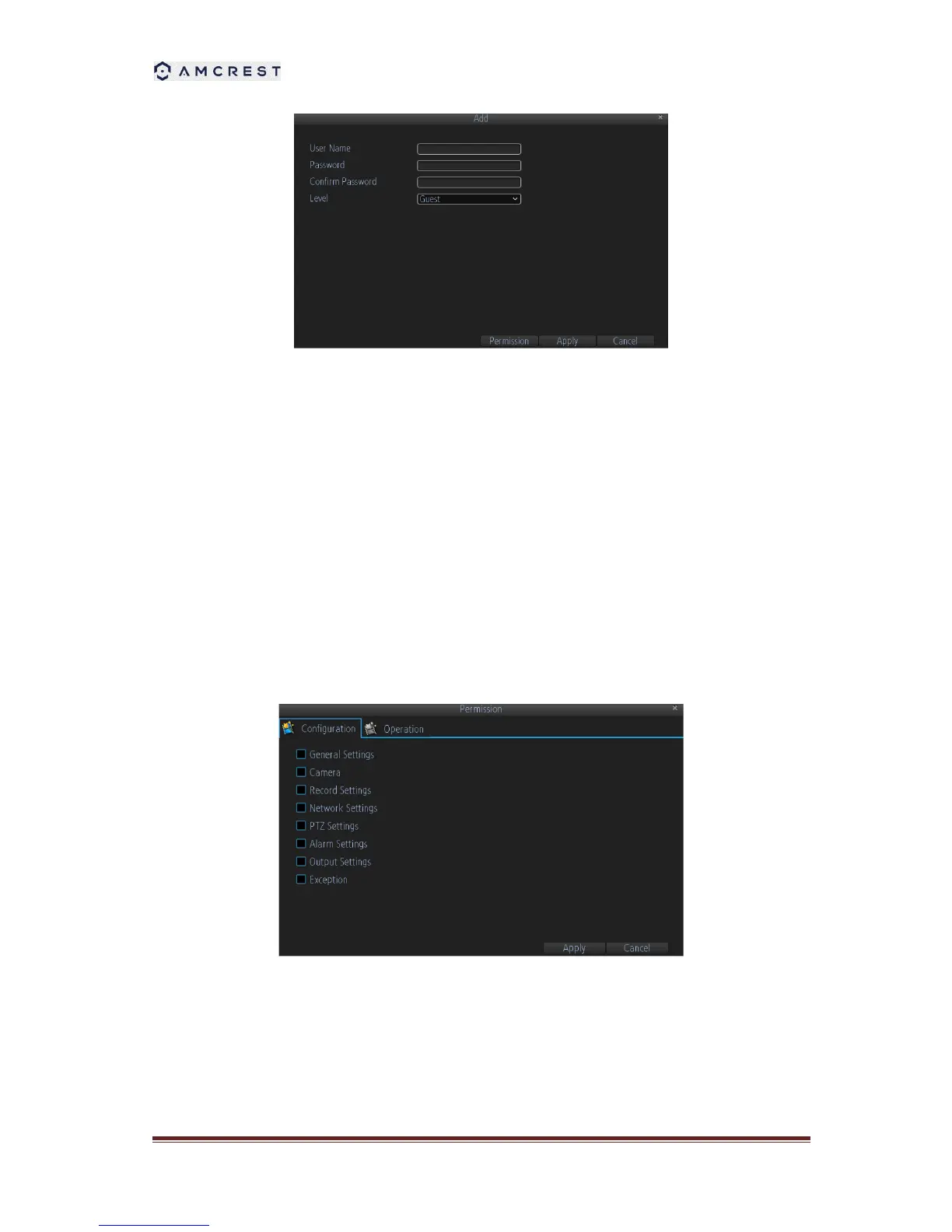 5. Configure privileges for operation under the Operation tab. You can select which channels