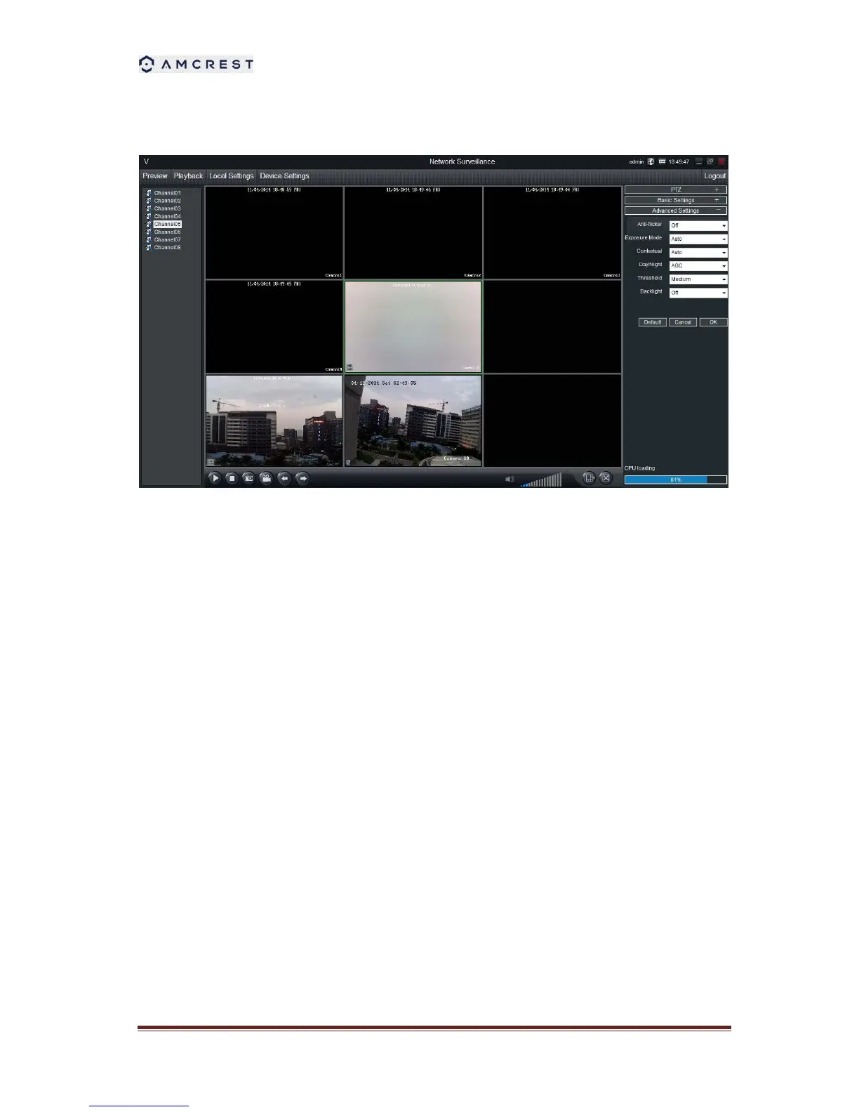 Preview: The screen layout emulates the multi-channel live view screen of the DVR, showing