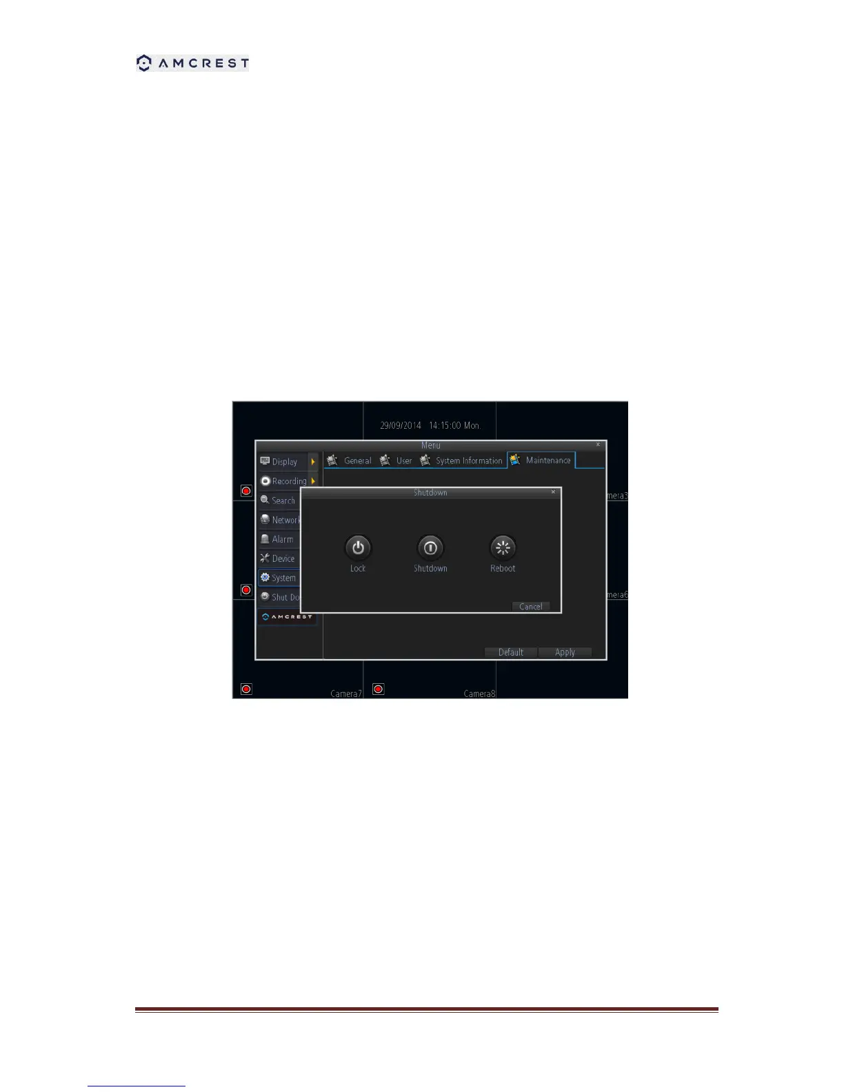 In the Shutdown menu, you may also reboot or lock your DVR. Locking your DVR will return you