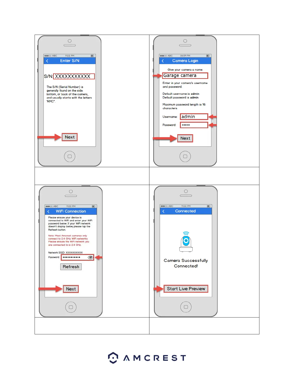camera’s username and password. Once