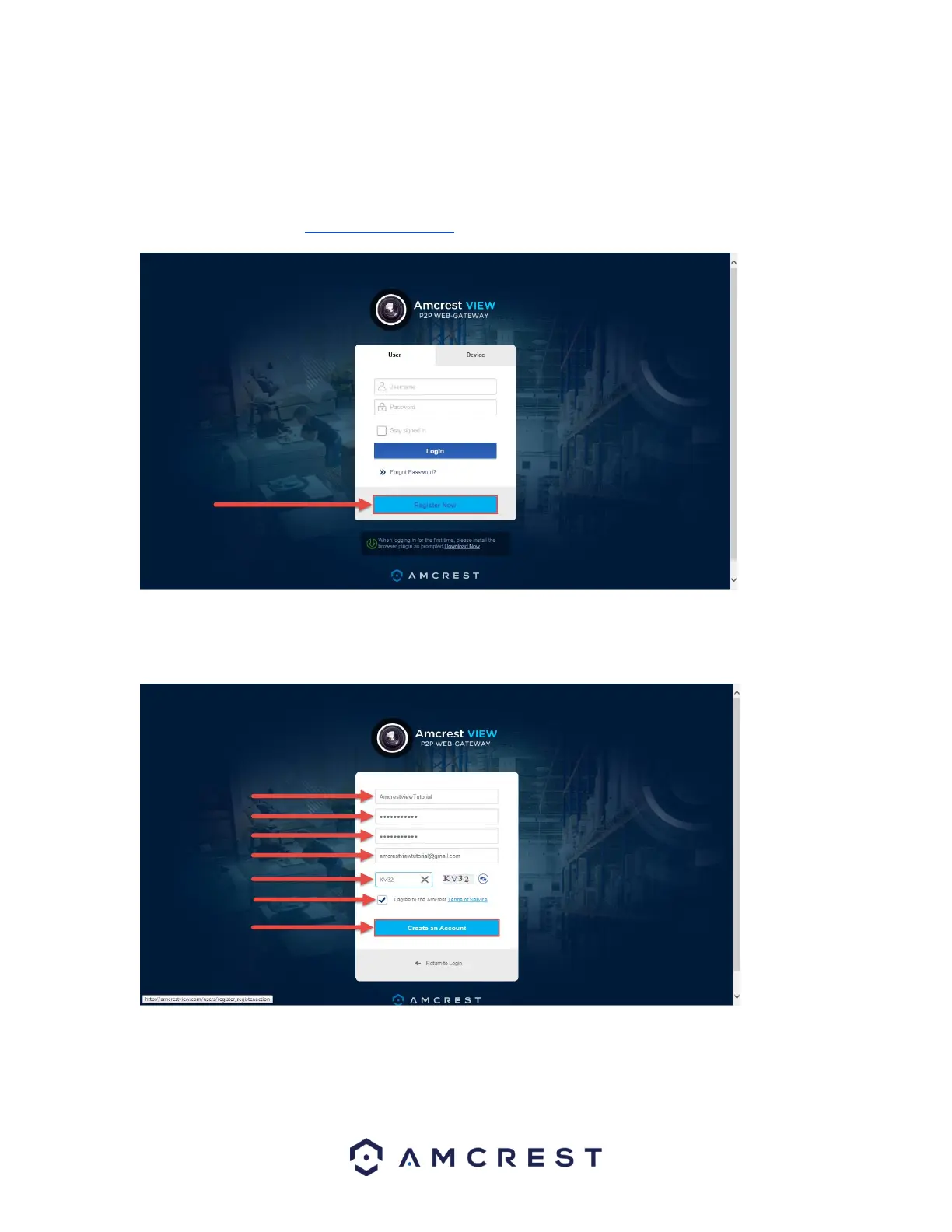 Email, enter the Verification Code, make sure the box is checked confirming you’ve read the ‘Amcrest Terms