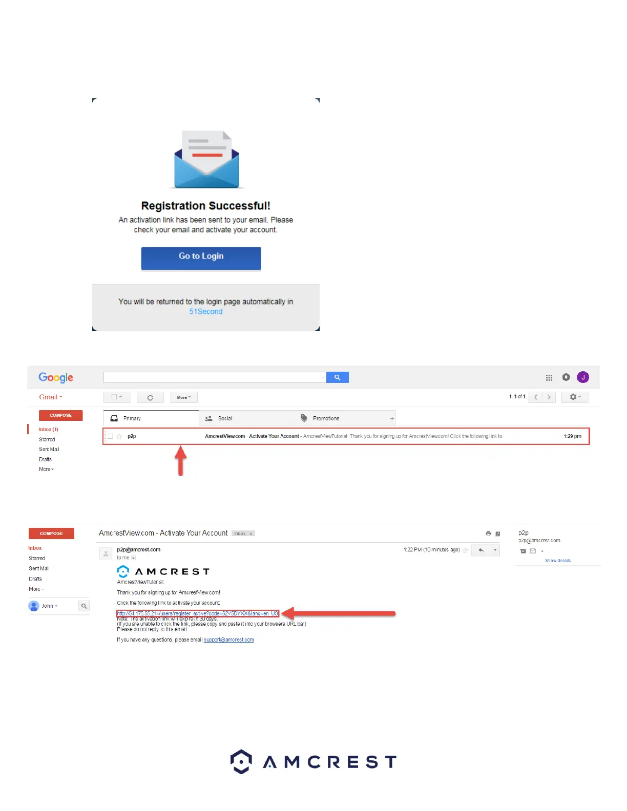 Check your email, and click the confirmation email from AmcrestView.com:
