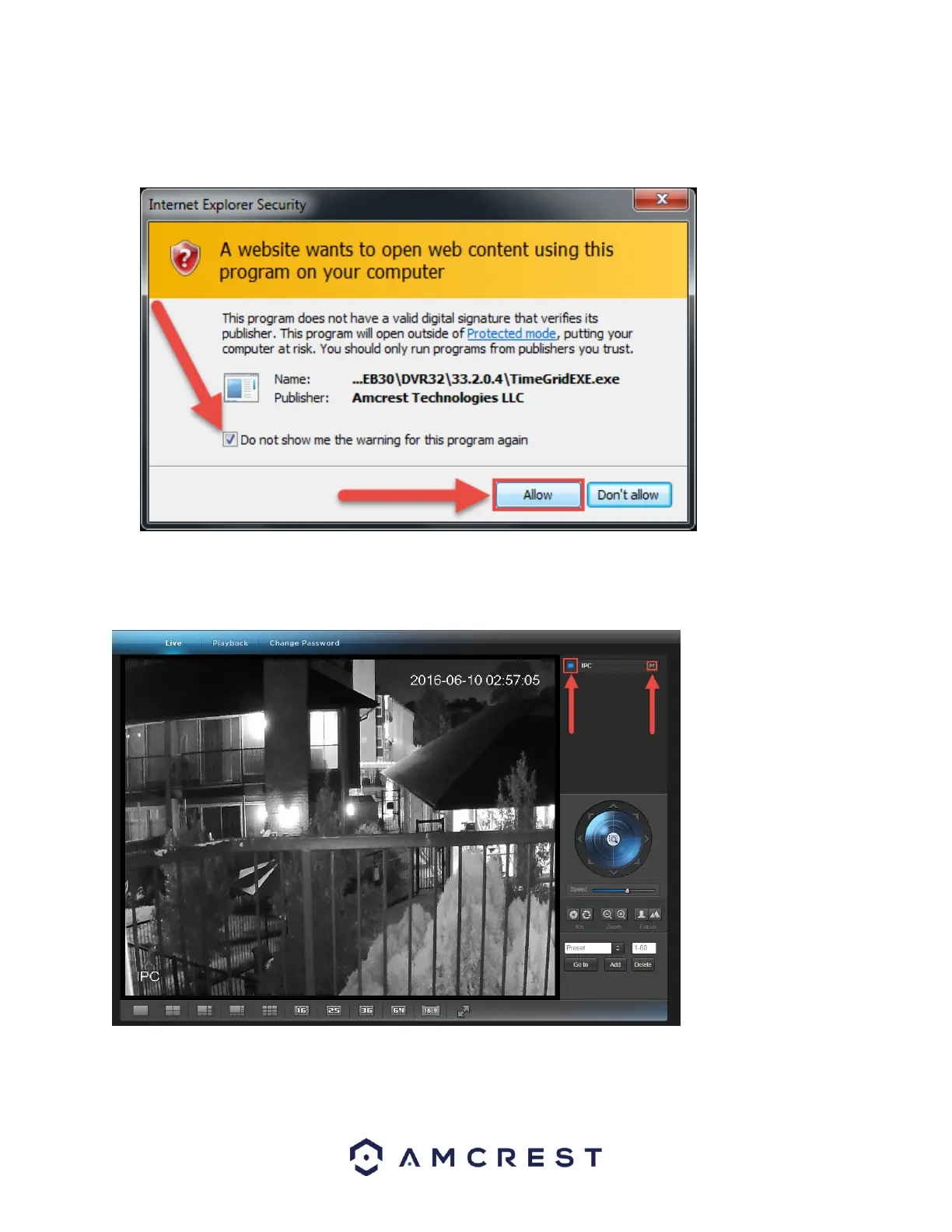 list. Click the small square icon to enable your feed for an added camera to see the video feed: