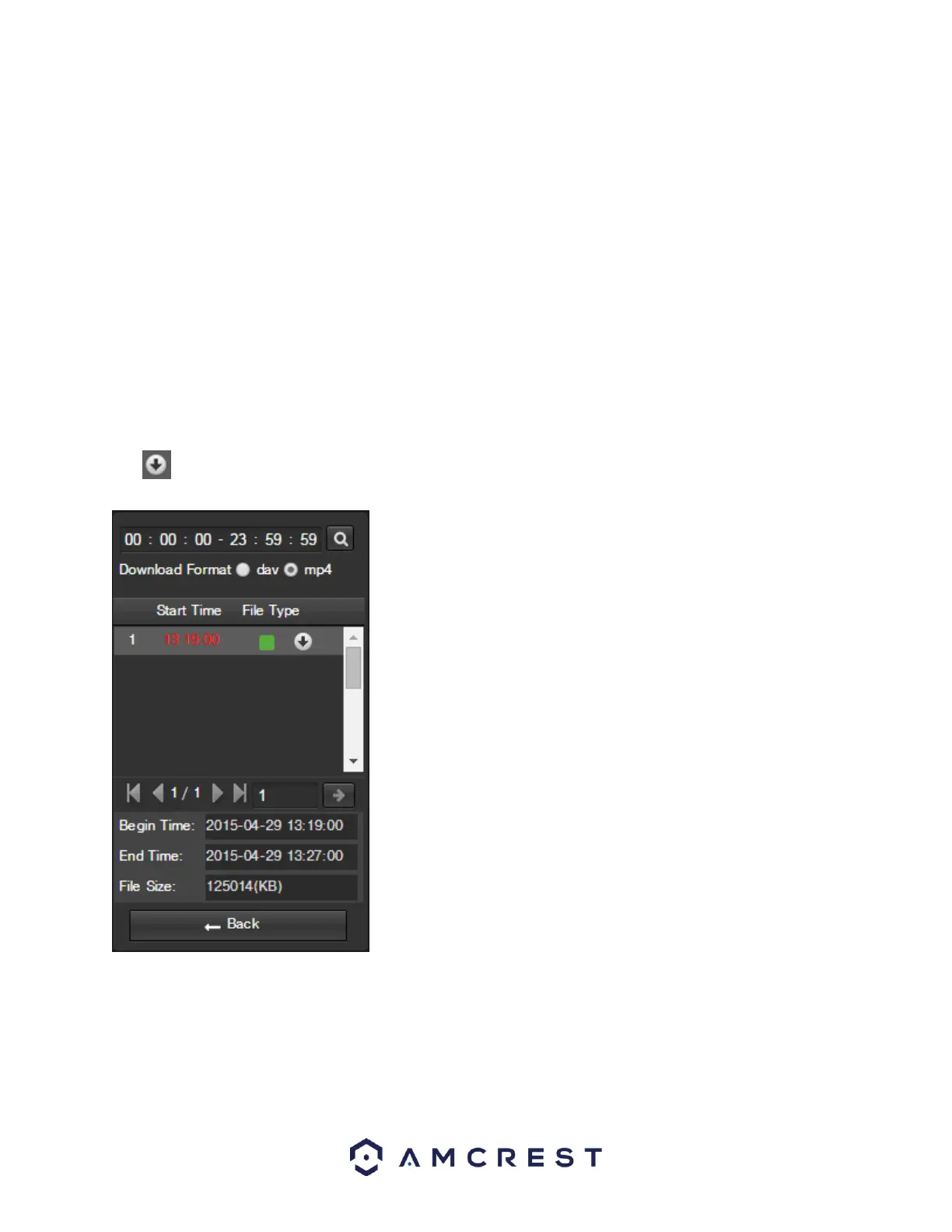 4. File List: This button opens a file list of all recorded video for a specific date range. From here, the user can