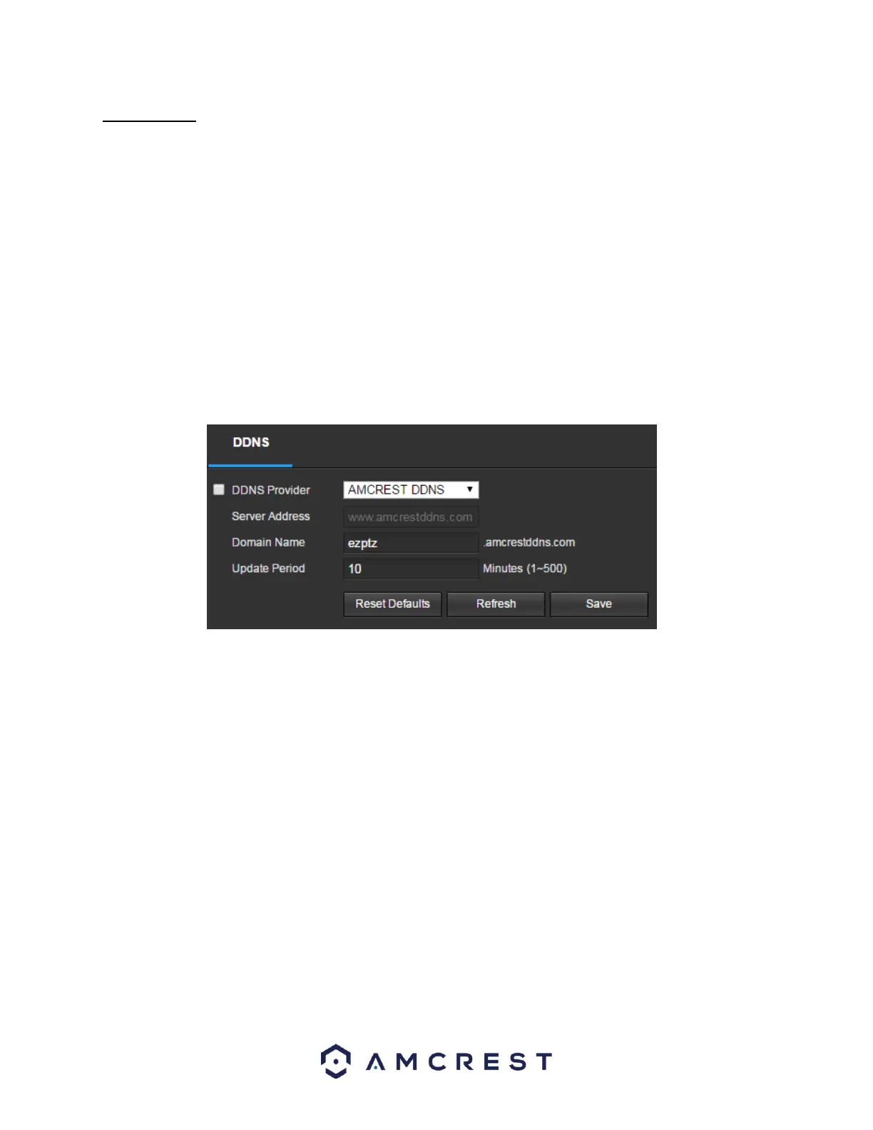 service is selected, different options may show on this screen. For purposes of this guide, AmcrestDDNS will be