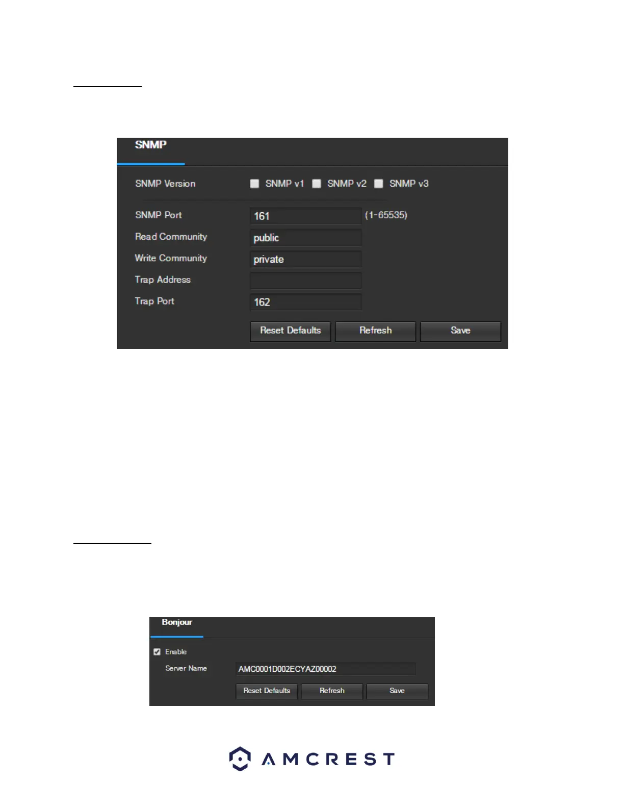 order to allow connection between various network devices. Below is a screenshot of the SNMP settings screen: