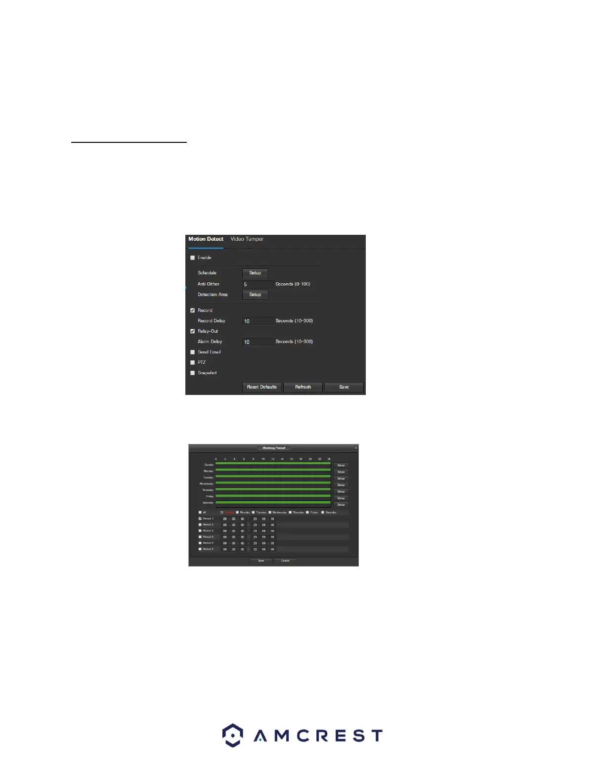 The video detection menu has two tabs: Motion Detect and Video Tamper.