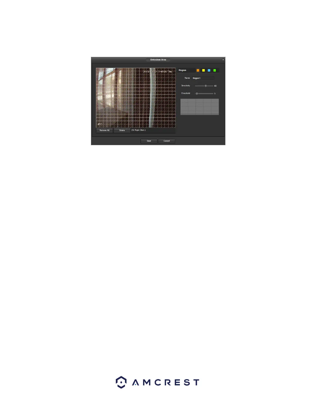 Detection Area: Clicking this button opens a pop up screen that can be used to set detection areas.