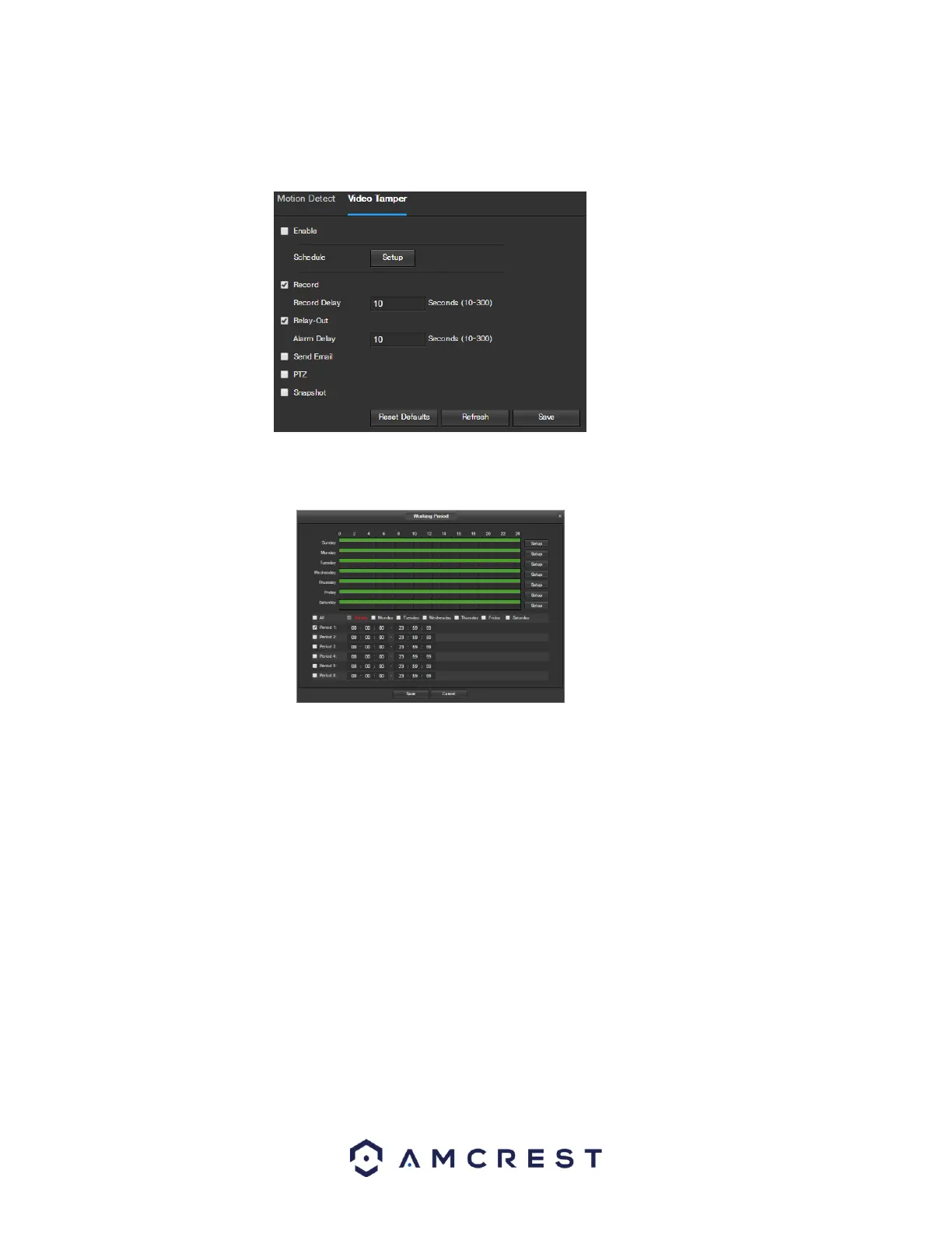 o Click and drag to set video tampering for certain days of the week. Also, periods of video tampering