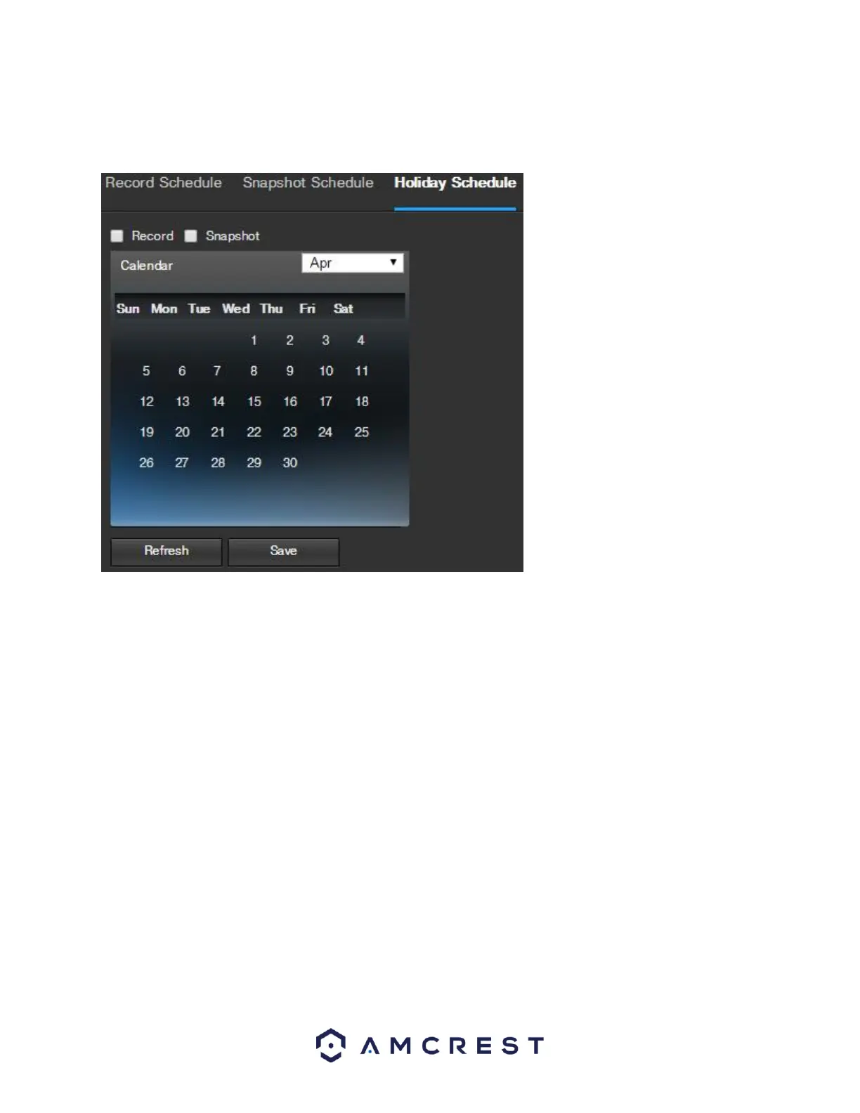 be customized to stop recording or snapshots for that day by using the Record and Snapshot checkboxes.