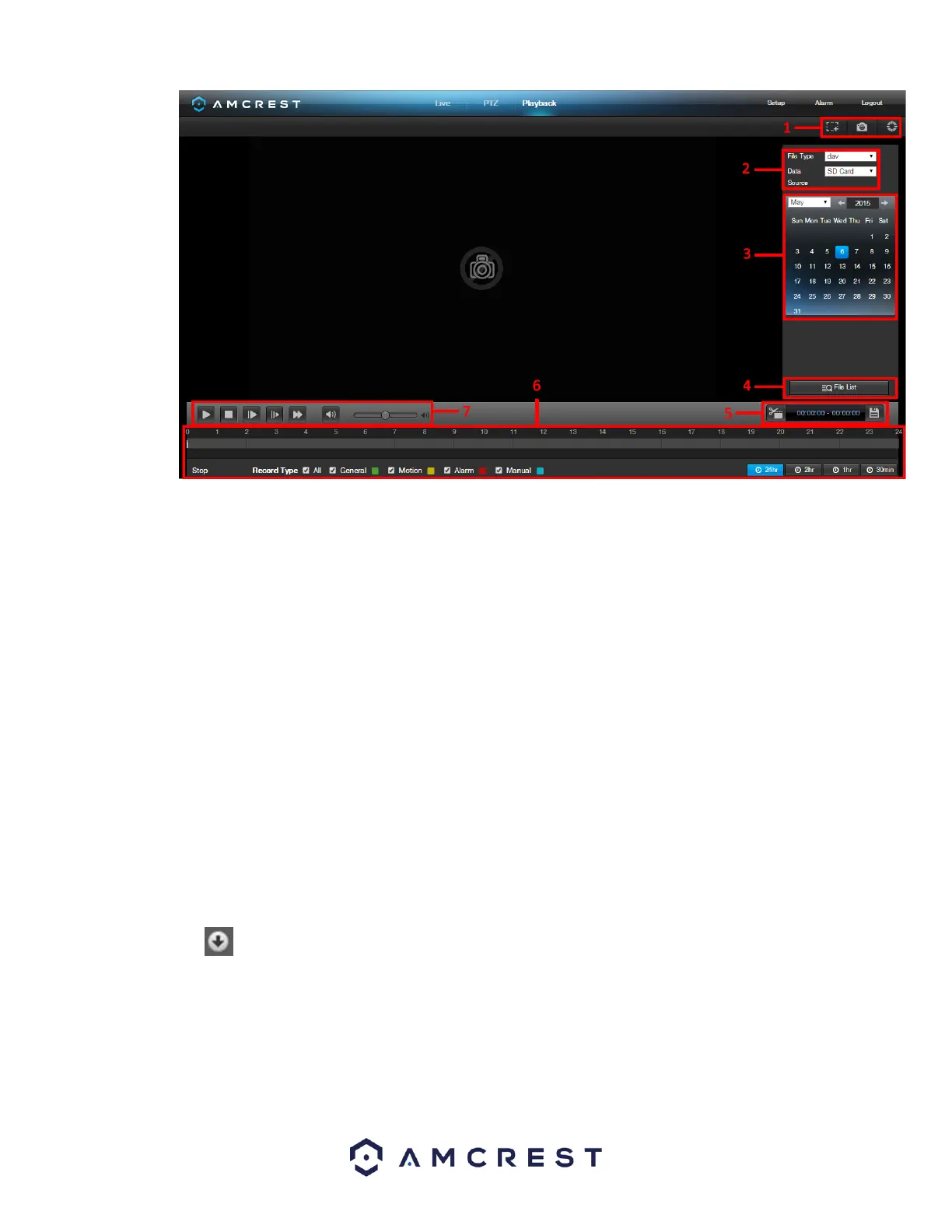 4. File List: This button opens a file list of all recorded video for a specific date range. From here, the