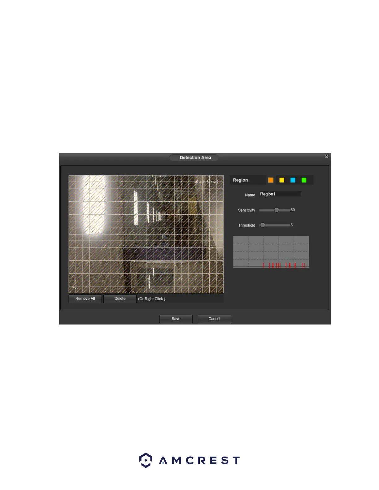 into effect. Clicking the cancel button to leave the motion detection zone and will not save the zone setup.