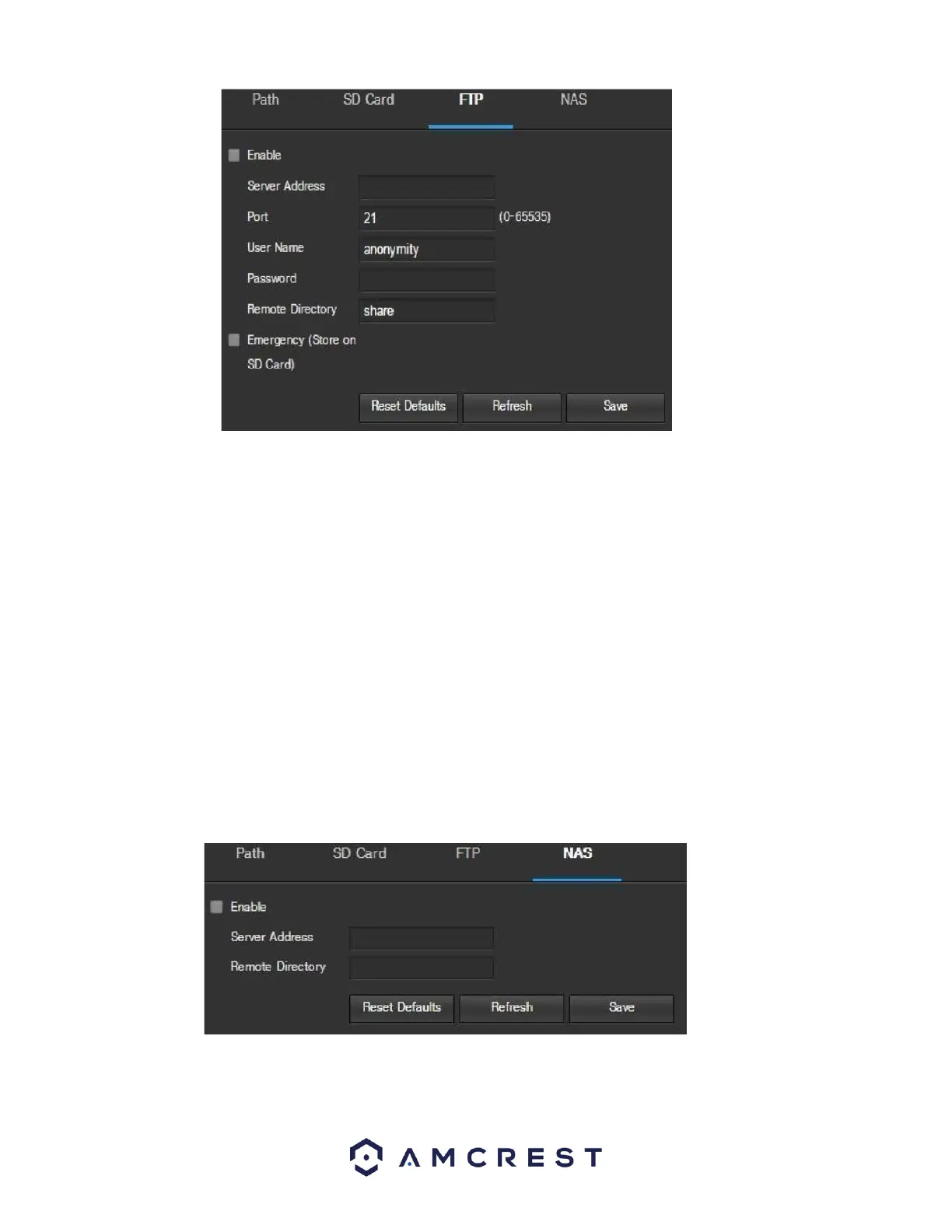 Below is an explanation of the fields on the NAS settings tab: