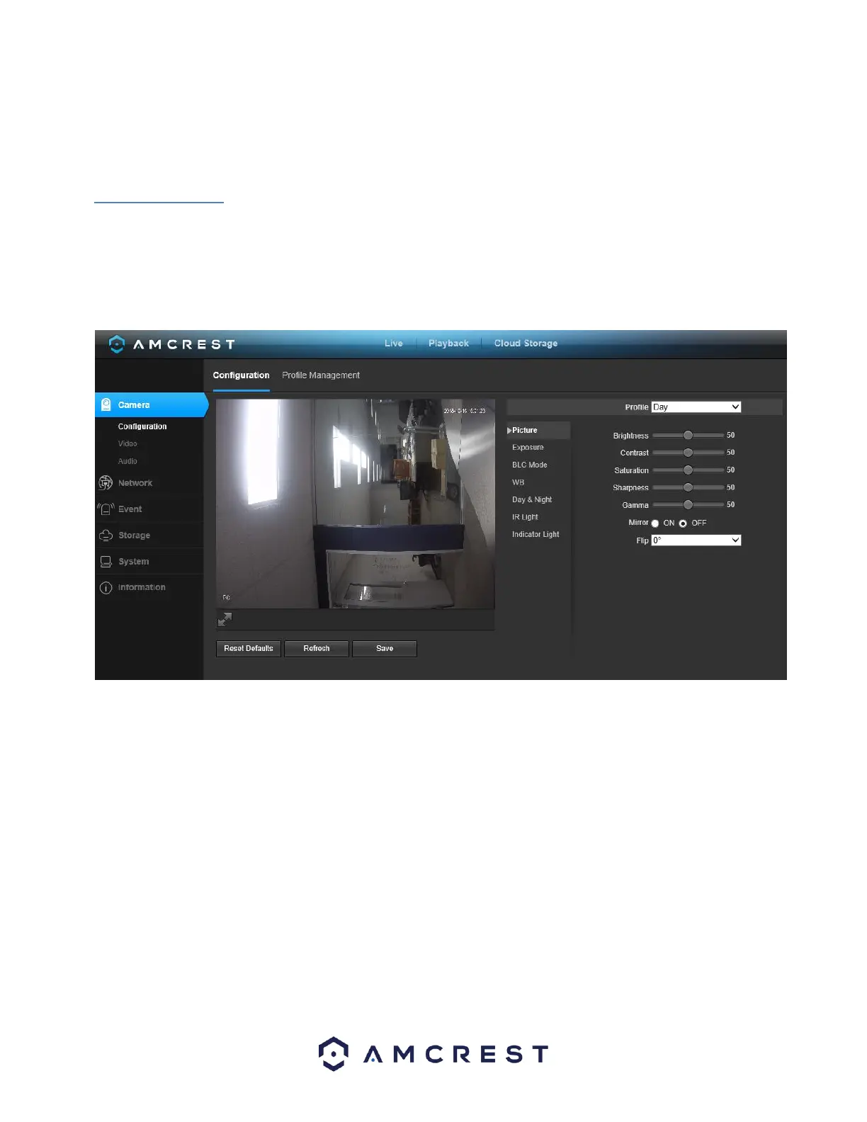 This menu allows the user to configure image profiles for normal, day, and night usage. Below is a screenshot that shows the