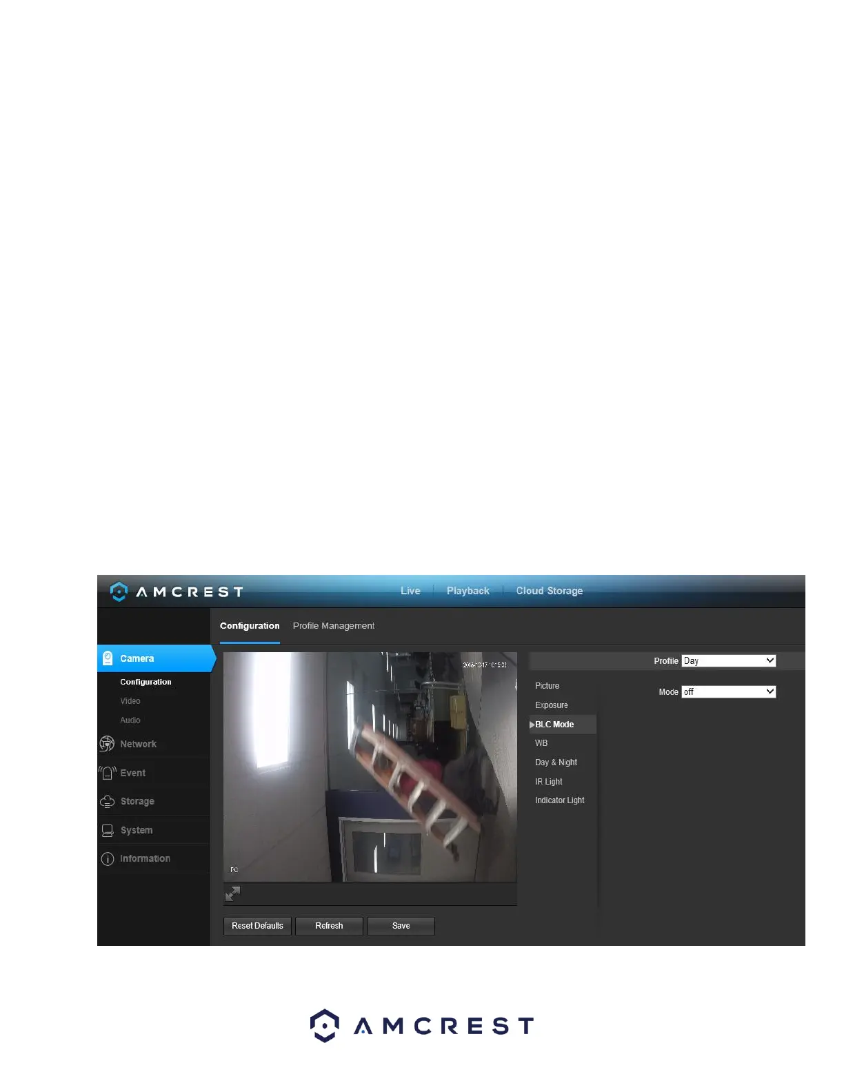 This dropdown box allows the user to select Back Light Compensation. The values are Off, BLC (Auto),
