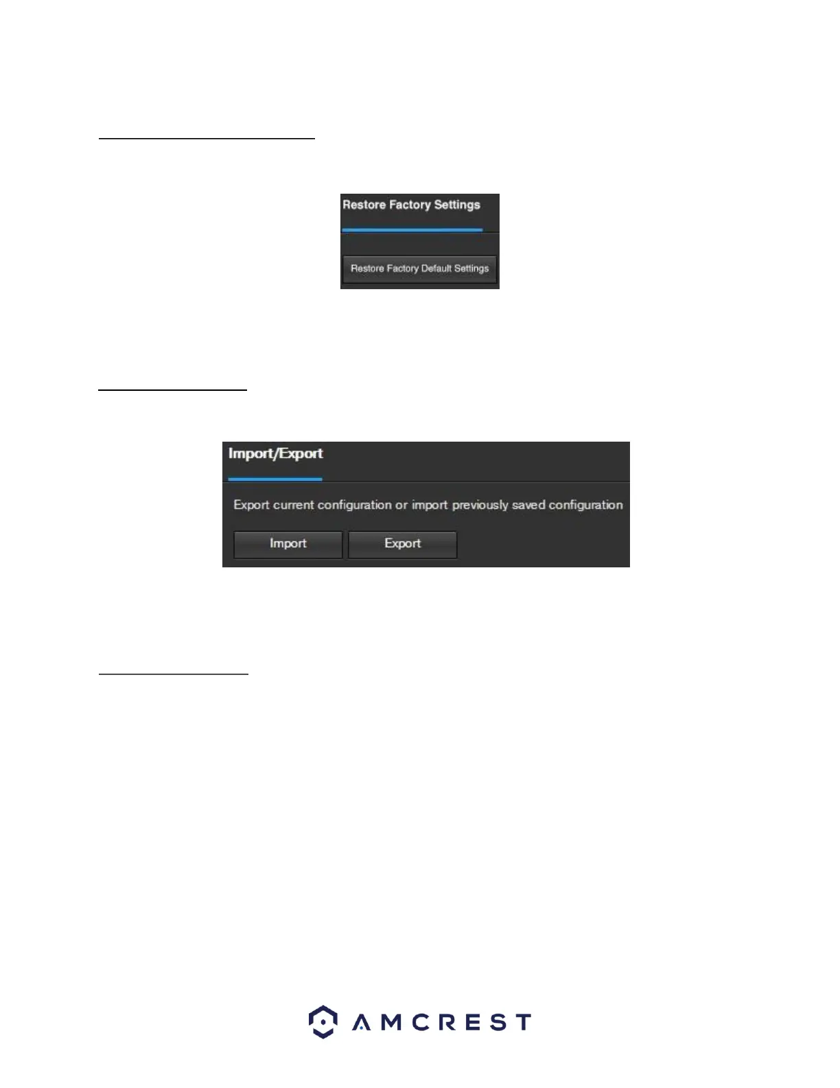 This screen allows the user to import or export settings from the camera. Below is a screenshot of the