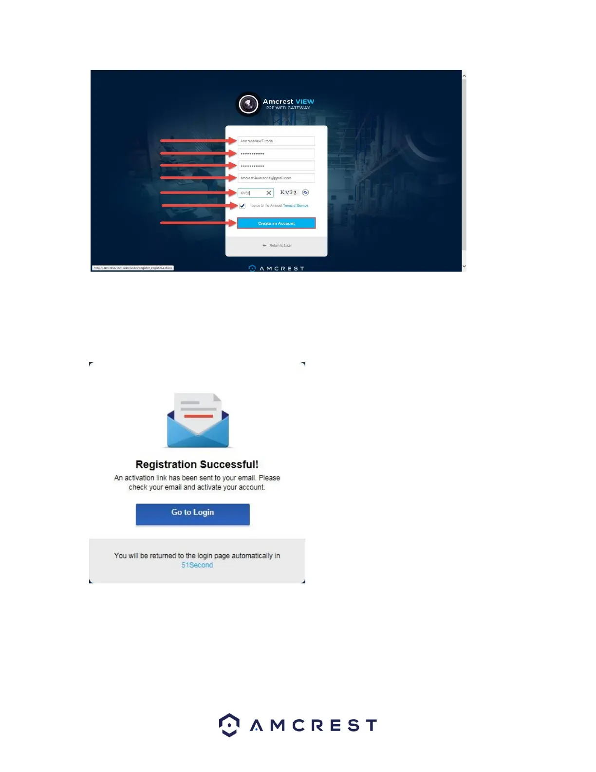 Check your email, and click the confirmation email from AmcrestView.com:
