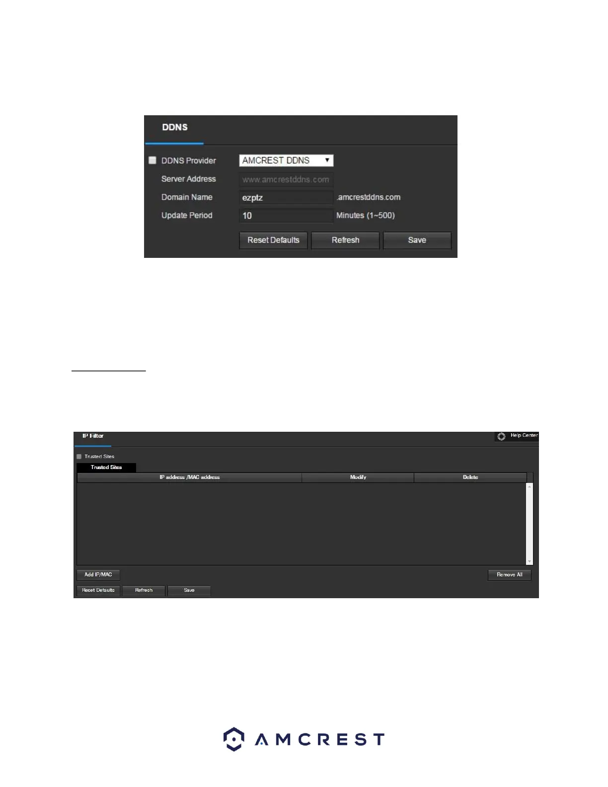 • Trusted Sites: This checkbox allows the user to enable the IP Filter feature for trusted sites.