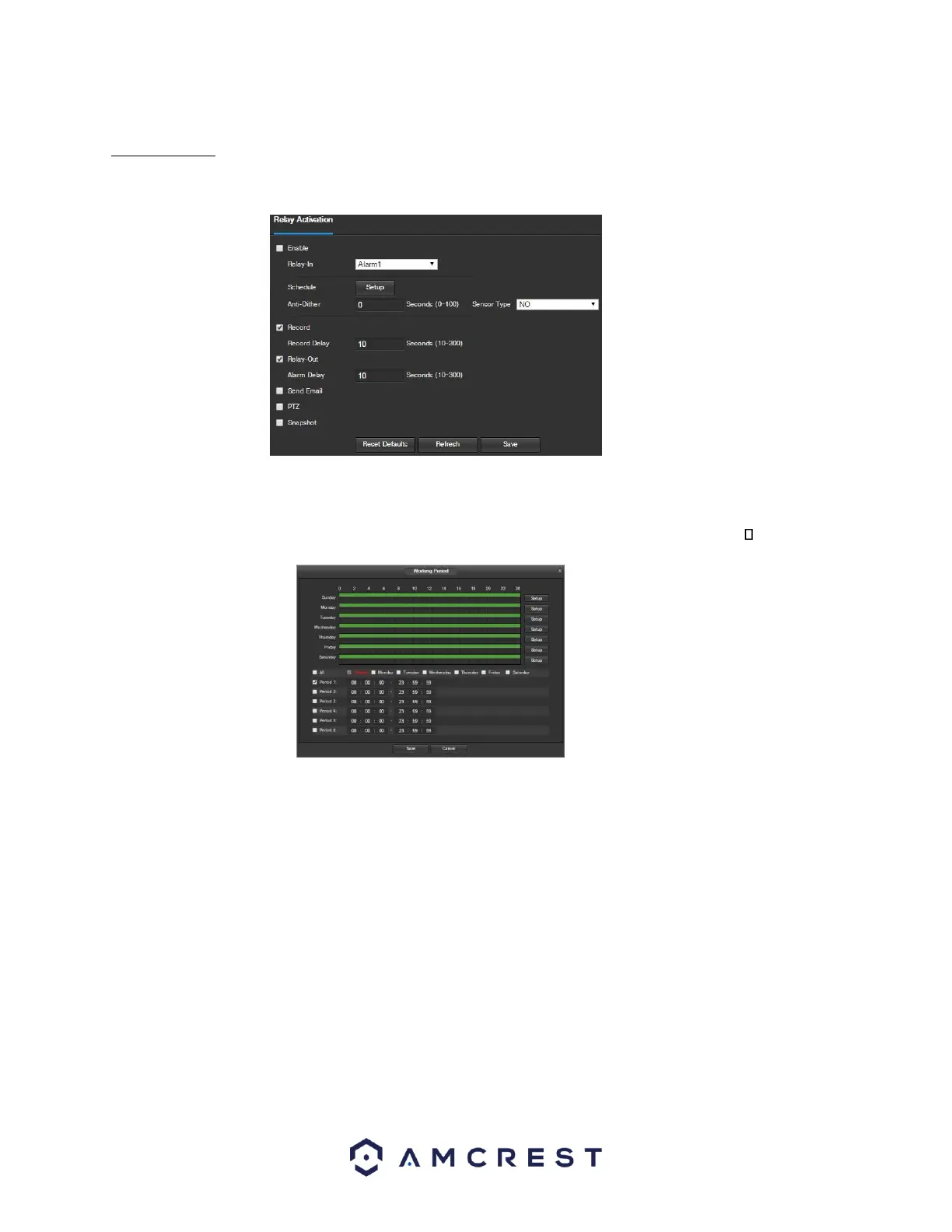 Working Period: Clicking this button opens a weekly schedule that can be used to set times.