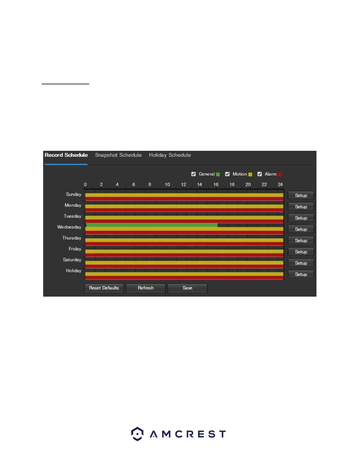 This tab is where video recording settings are configured. Below is a screenshot of the Record Schedule settings
