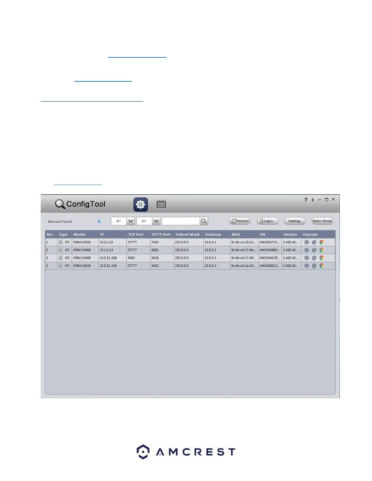 from www.amcrest.com under the “Support” tab, Apps & Software. The IP Config tool’s interface looks like the below image: