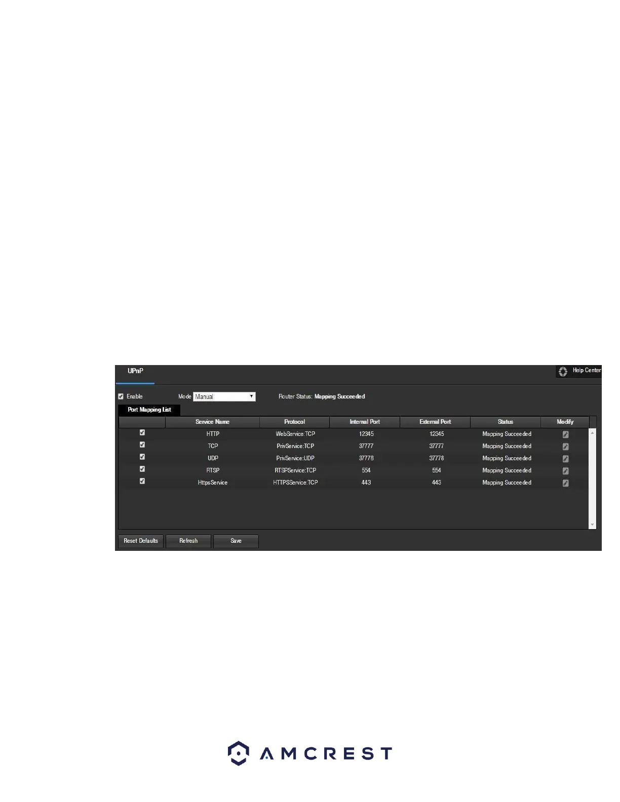 To reset to default settings, click the Reset Defaults button. To refresh the page, click the Refresh button. To