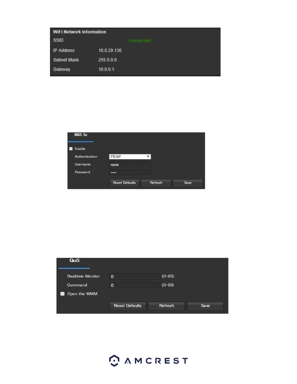 To reset to default settings, click the Reset Defaults button. To refresh the page, click the Refresh button. To