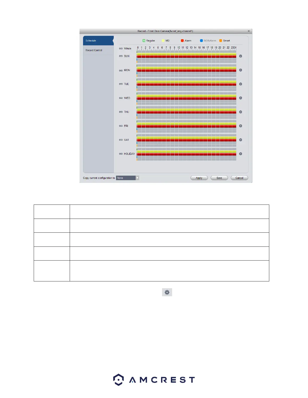 To begin setting a record schedule for your device, click on the icon next to the day you want to schedule your record plan.
