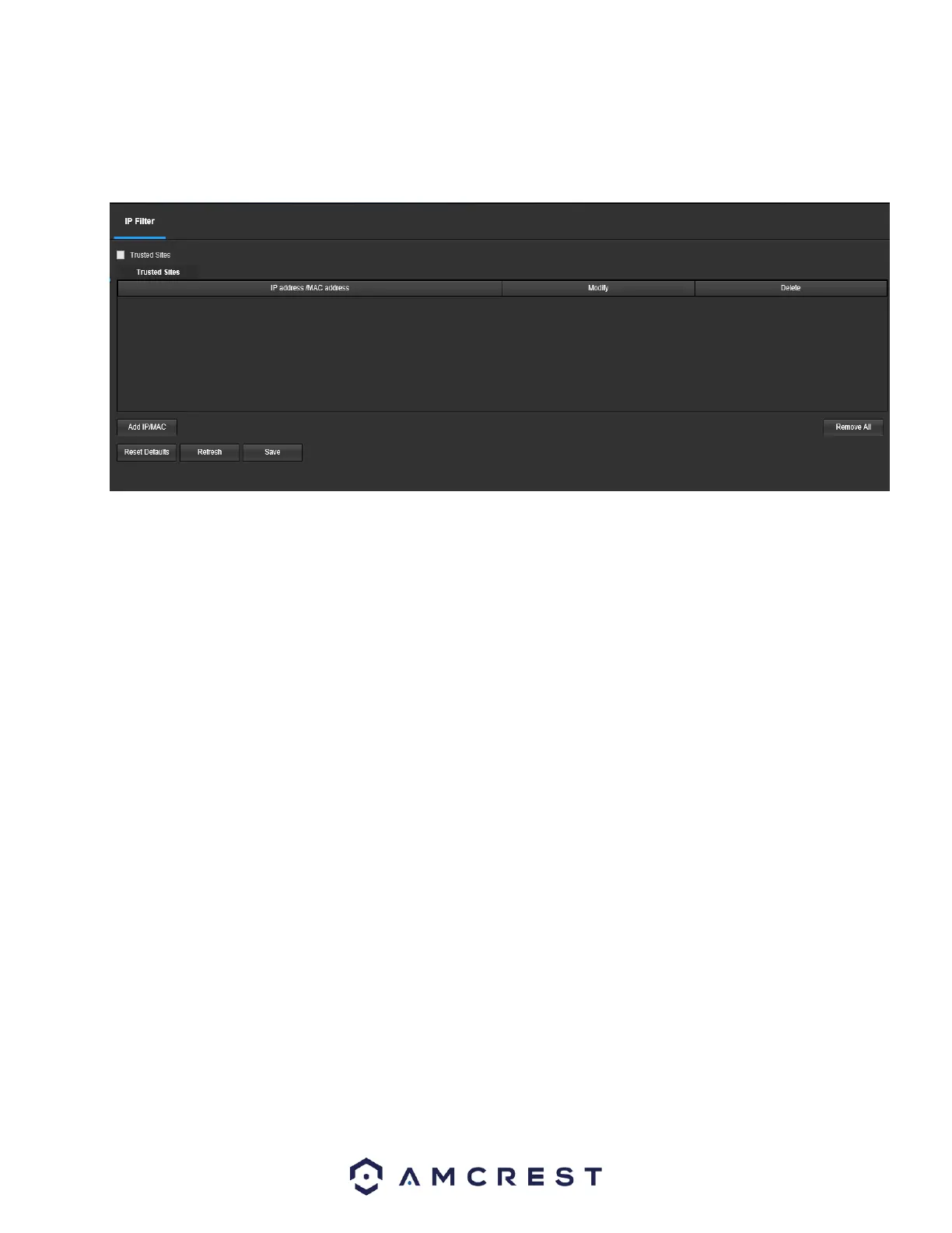 • Trusted Sites: This checkbox allows the user to enable the IP Filter feature for trusted sites.